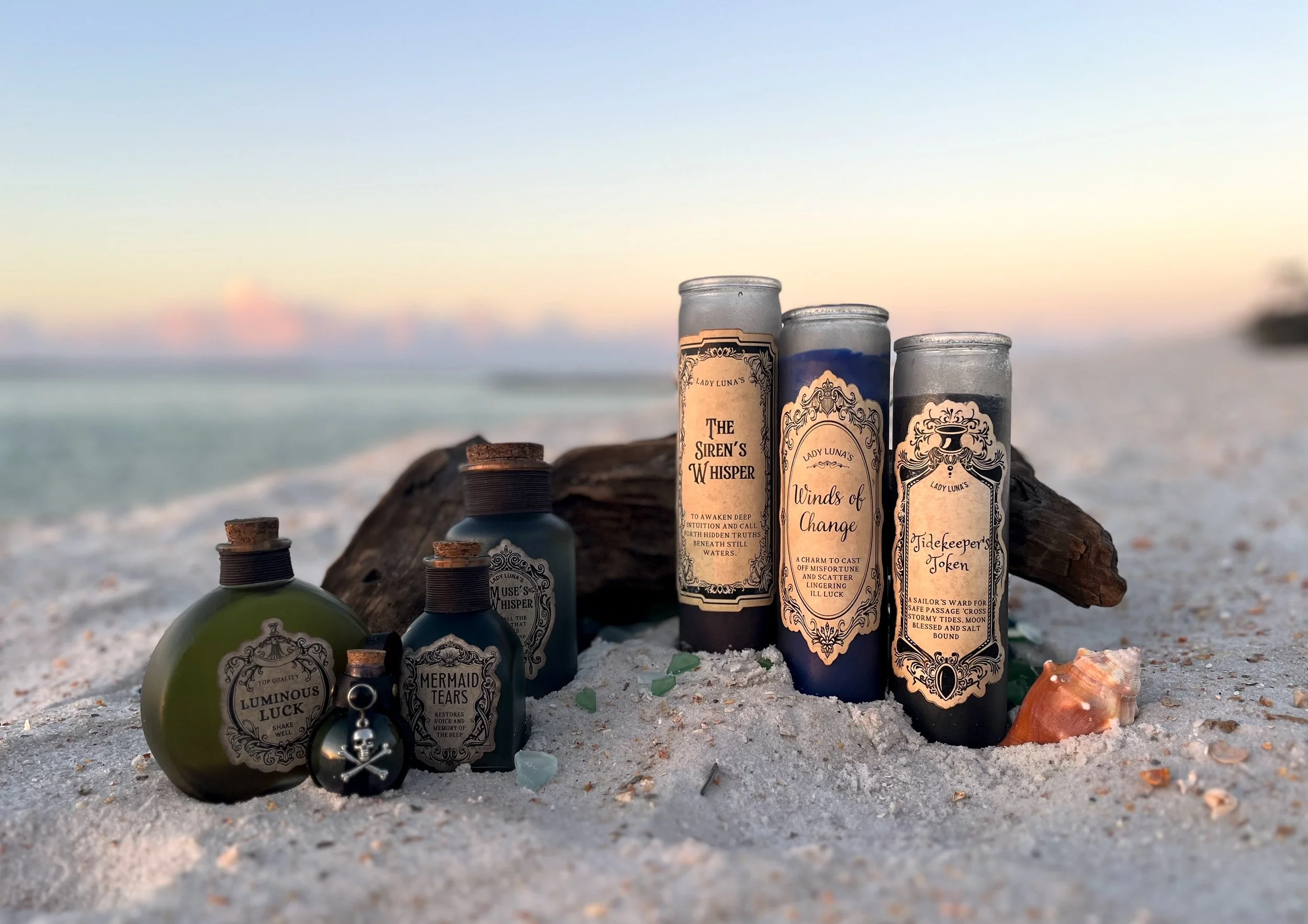 A spellbinding set of potions and spell candles inspired by the mysteries of the sea.
