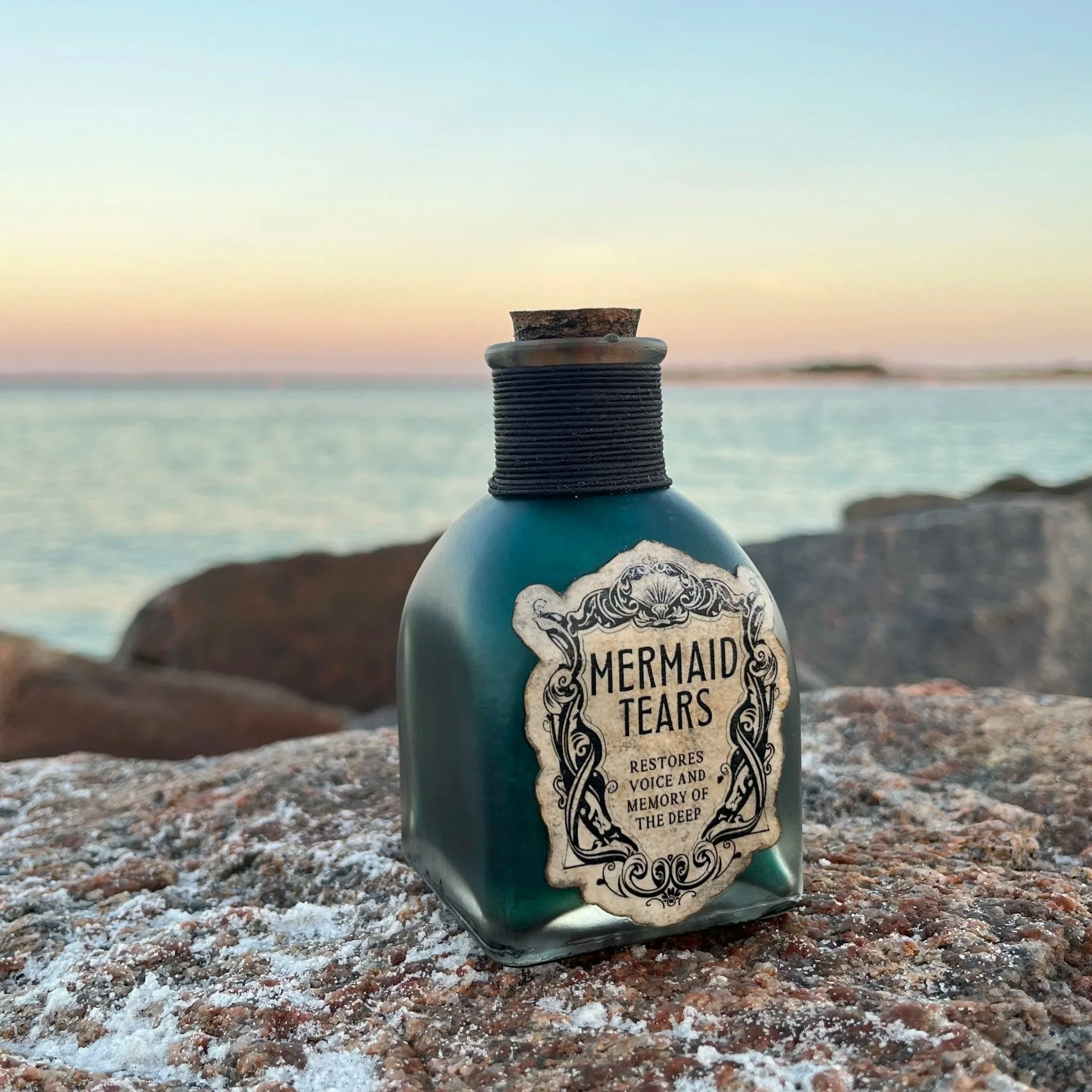 Like the delicate droplets found in the hidden heart of the ocean, this potion rests in tranquil teal, calm and luminous, until awakened by a gentle shake. As it stirs, the potion deepens to a dark, iridescent teal, swirling like moonlit currents and revealing the quiet magic of the tides. Each transformation calls forth memory, intuition, and the spark of creativity that flows just beneath the surface, a secret whispered by the sea itself.