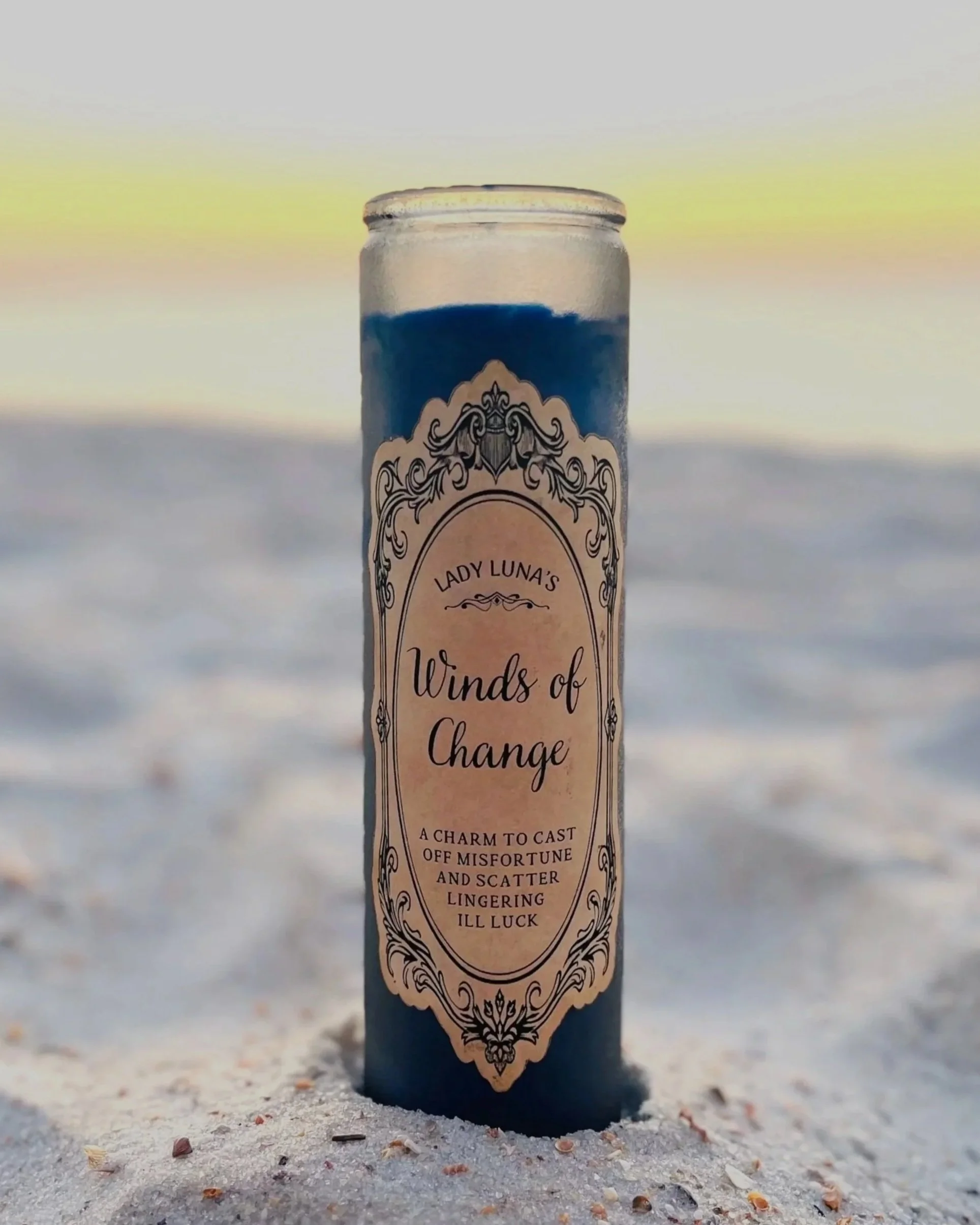 A charm to scatter misfortune and sweep away stagnant energy. This candle clears the path forward, inviting fresh beginnings with every flame.